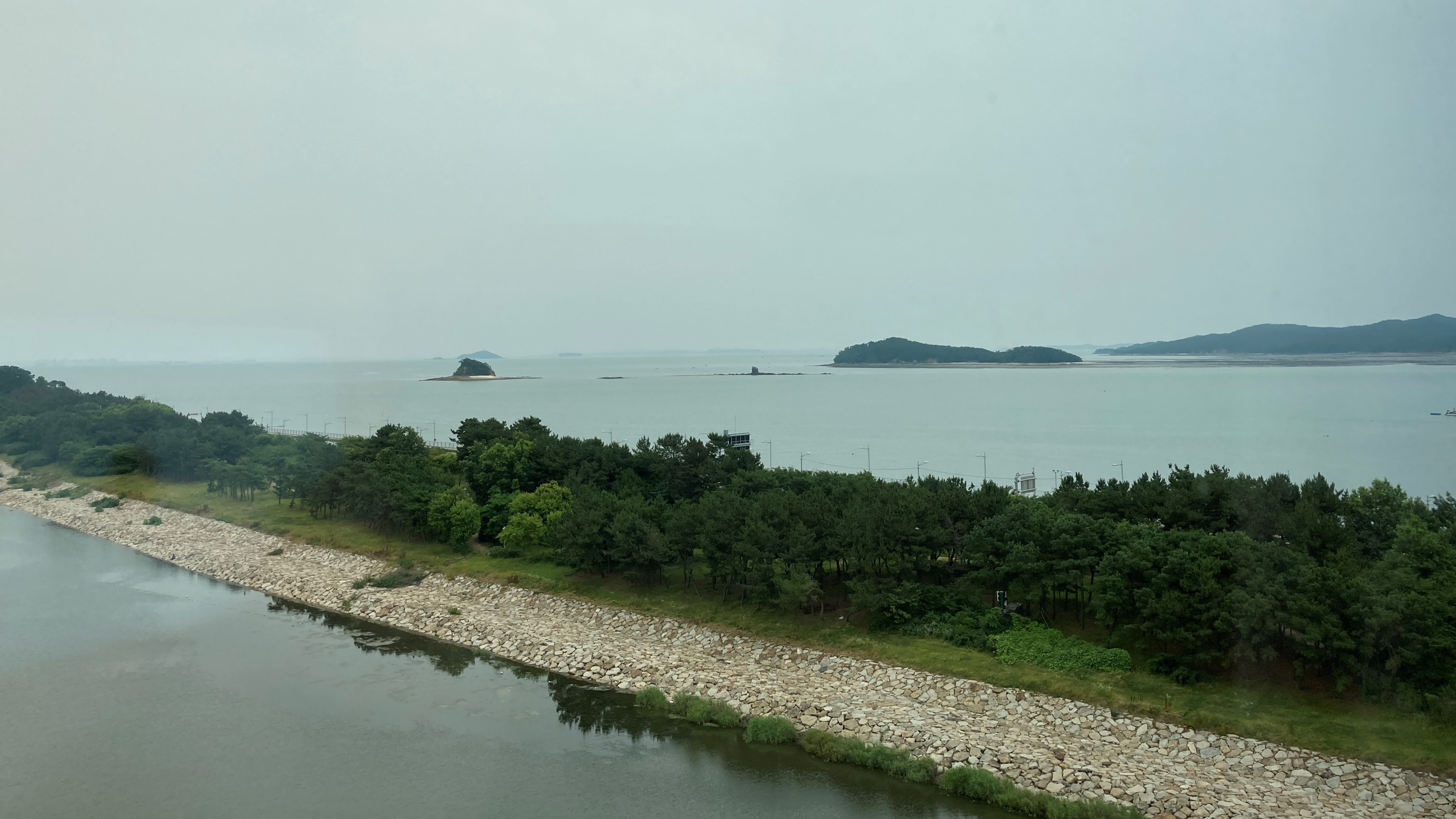 서해 바다 앞에 위치한 호텔이기에 일부 객실에서는 오션뷰를 제공하고 있는데 지도에서도 보이다시피 사선방향으로 육지가 방조제와 같이 뻗어있기에 깨끗하고 광활한 수면이 펼쳐진다기보다는 '어느정도 바다도 볼 수 있다'라는 개념으로 이해하시면 좋을 것 같습니다. 위 사진을 찍을 당시에는 날씨가 좋지 않았기에 그래도 좀 더 쾌청한 날씨에 방문하신다면 더 좋은 뷰를 경험하실 수도 있을 거라고 생각합니다.