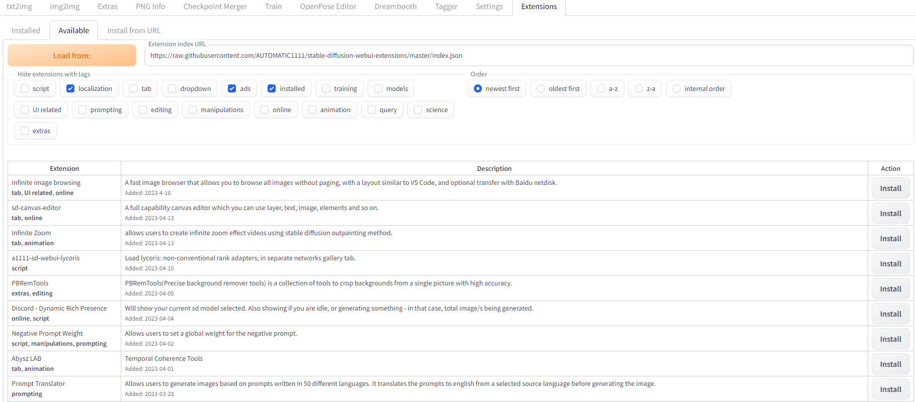 태깅을 하는 방법에는 여러가지가 있으나 저는 Stable Diffusion WebUI의 확장기능으로 제공하는 Tagger를 사용했습니다.