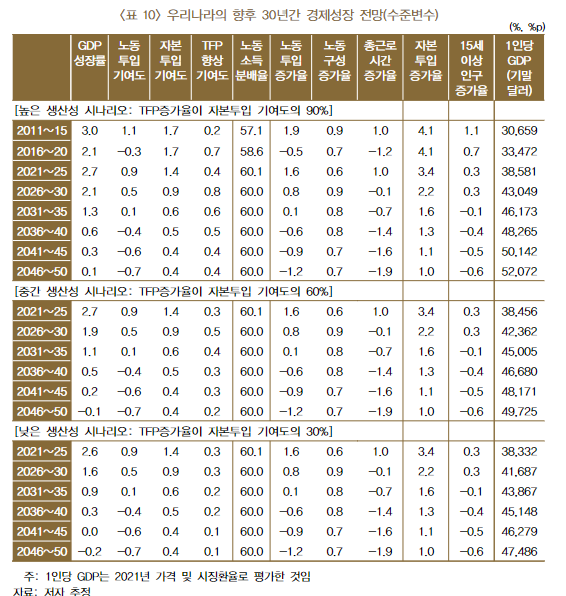 이번 예측은 중간 생산성 시나리오를 기준으로 5개년 단위로 예측된 성장률을 반영하여 이평선을 만들기로 하겠습니다.