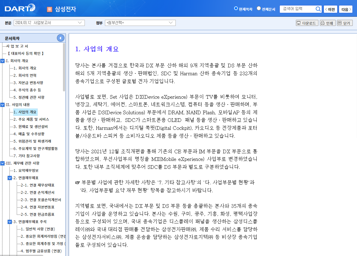 1) DART 공시 자료를 통해서는 기업이 영위하는 사업에 대한 개괄적인 정보를 습득합니다.