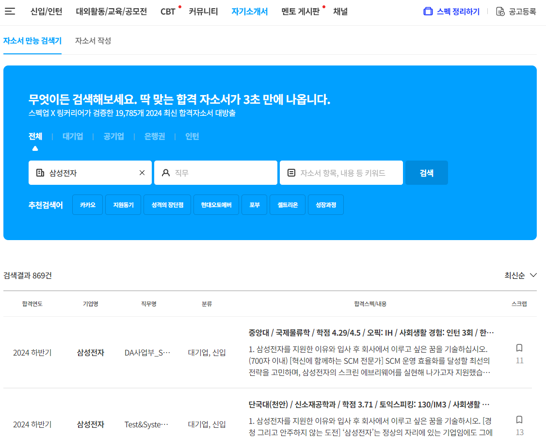 자기소개서 작성도 마찬가지입니다. 제가 느낀 바로는, 각 기업의 인사팀에서 요구하는 문항과 답변은 어느정도 고유의 색을 가지고 있습니다. 때문에 기존 몇개년도의 합격자소서를 읽어본 뒤, 지원한 기업에서 통용되는 레이아웃을 도출하고 본인의 주장을 정리한다면, 좀 더 효율적으로 자기소개서를 구성하고 작성할 수 있습니다.
