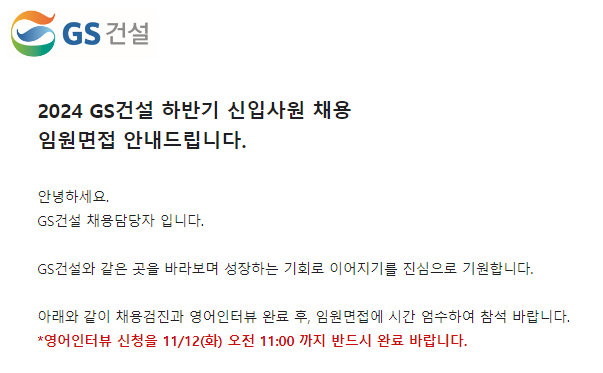 인적성검사편에서 이어지는 1차 면접 후기입니다. 취업 후기 (3) - 인적성검사(잡다, SHR, GSAT)2편에서 이어지는 내용입니다. 취업 후기 (2) - 자기소개서 작성1편에 이은 2024년 하반기 취업 후기 2
